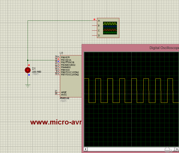 براي اينكه بهتر متوجه بشين يك مثال عملي ميزنم كه بهتر متوجه بشين اگر بخواين هم ميتوانيد با وصل كردن اسيلوسكوپ در پروتيوس به پايه هاي oc1a و oc1b شكل موج pwm را مشاهده كنيد.
