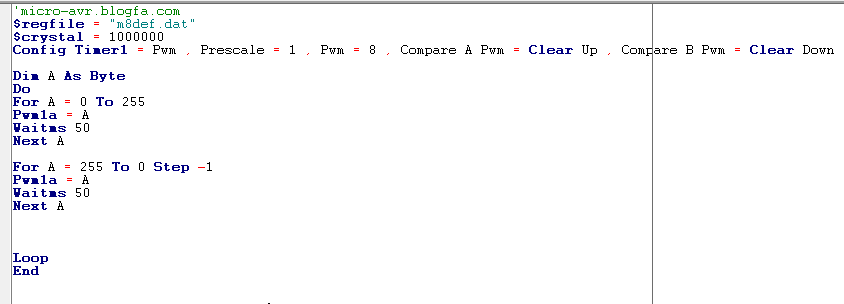 Config Timer1 = Pwm , Prescale = 1 , Pwm = 8 , Compare A Pwm = Clear Up , Compare B Pwm = Clear Down