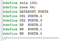 و برای اینکه بدانیم پایه های lcd به کدام پورت ها باید وصل شود باید کتابخانه glcd را باز کنیم و این خط هایی از برنامه که در شکل زیر میبینید توجه کنیم و میتوانید آنها را تغییر دهید و lcd را به پورت های دیگری وصل کنید بعد از تغییر باید آن را ذخیره کنید.