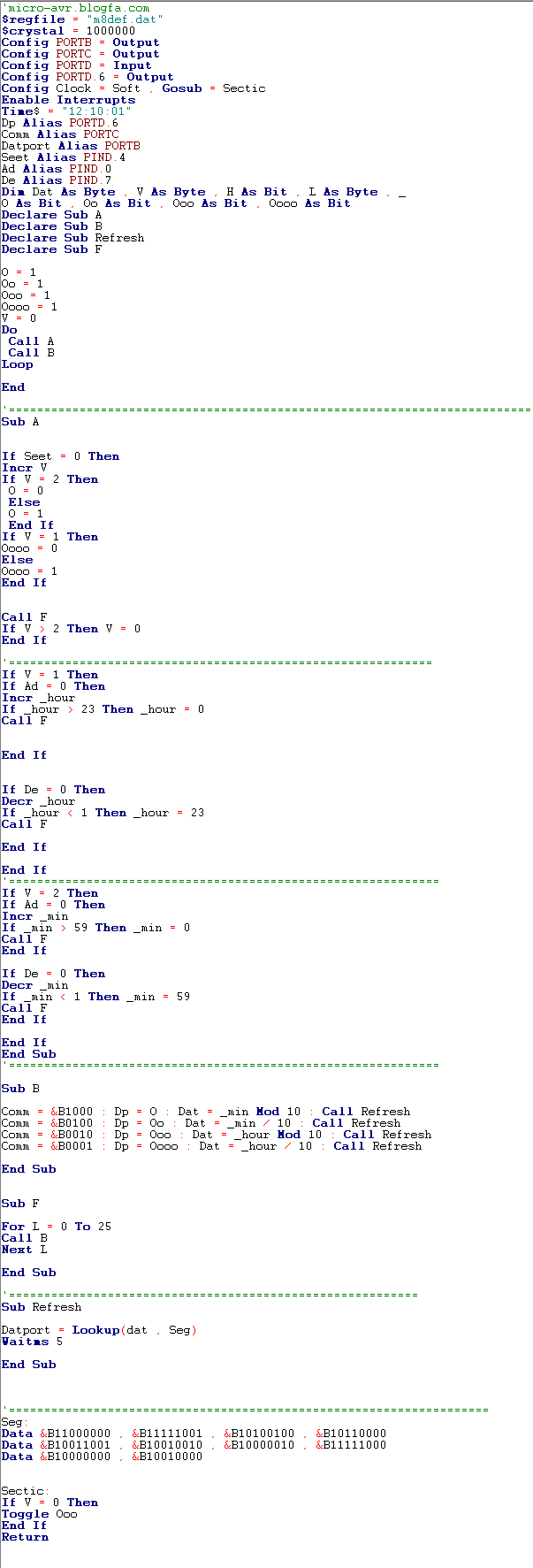 بعد از تنظیم زمان دوباره کلید set را فشار میدهید تا میکرو به حالت اول برگردد و نقطه وسط ساعت و دقیقه هر یک ثانیه یکبار چشمک بزند.